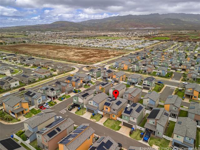 Sought After Mahi'ai Model Plan 13 in Mamaka at Hoopili . This gorgeous 4 bedroom and 2.5 full bathroom home includes sleek finishes such as Viatera Quartz Snow Storm Counter tops , Beige Luxury Vinyl plank flooring in living room, kitchen and bathrooms , Split A/C System in living room and bedrooms, Stainless Steel Kohler under mount sink in kitchen along with a stainless- Steel appliance package with dishwasher, an owned 12 panel Photovoltaic system with 1 tesla wall mount batteries and more. Also, the home features a 1 car garage parking, 1 car-port parking and parking on your new driveway. Home also has a well- manicured yard and sits on 4,104 sq ft of land. Enjoy Hoopili living which offers many great amenities such as the new SOHO Swimming pool for all Hoopili Residents to use and check out festival street hosts to a farmers' market and other great festival. Within close proximity to swimming pool and parks come and see this gorgeous home before it is gone.