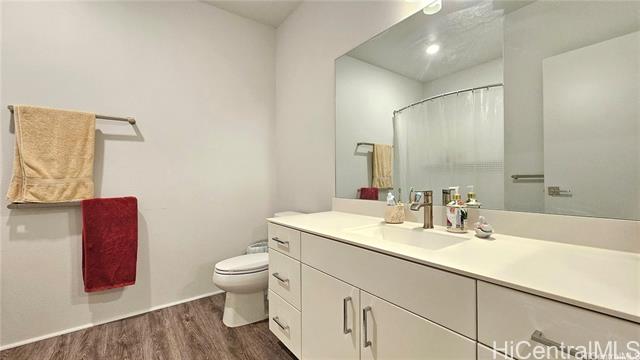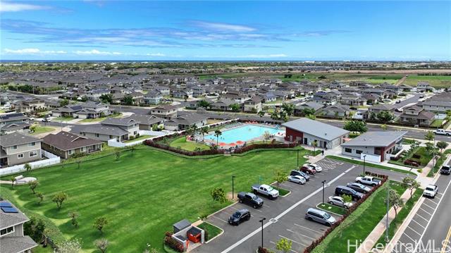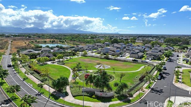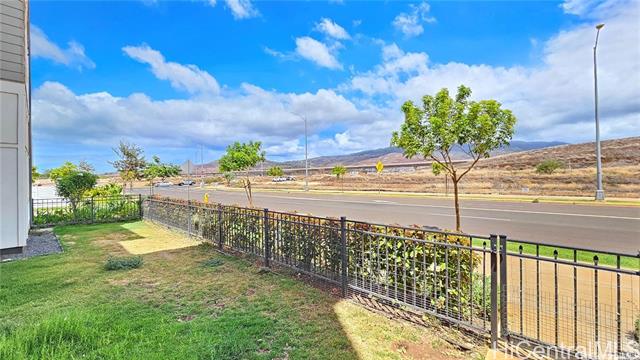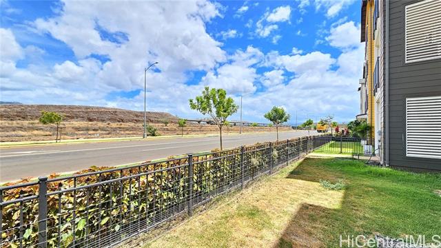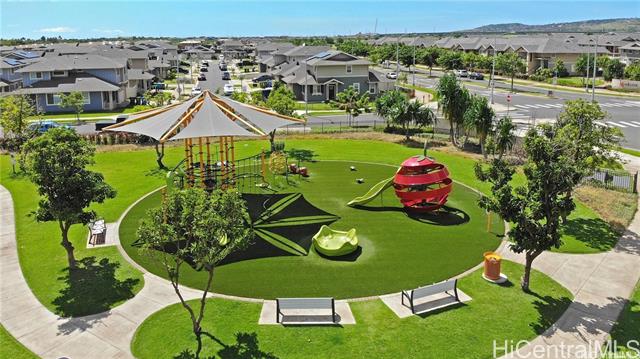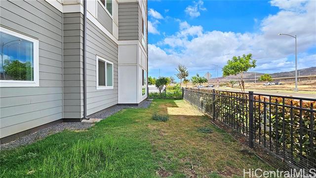 Rarely available single-level, ground-floor, corner unit 3 Bedroom / 2 Bath townhome with a spacious living area and private yard. This corner unit offers an open-concept layout with a kitchen island, ideal for both daily living and entertaining guests. The primary bedroom includes a walk-in closet and a private ensuite bathroom with dual sinks and shower. A second bathroom comes equipped with a full-size bathtub. Extra windows throughout the unit bring in abundant natural light. Modern comforts include air conditioning and a full suite of appliances: range/oven, microwave hood, dishwasher, refrigerator, and in-unit washer and dryer. Conveniently located just one block from the Hoopili rail station. The community features a variety of amenities, including a pool, parks, a dog park, soccer fields, and more!