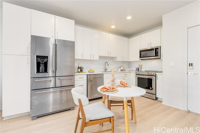 LOWEST PRICED 2-bedroom in ALL of HOOPILI and CLOSEST residential complex to the RAIL STATION! Get to the airport in just 20 minutes or downtown, in the future, in 32 minutes! Welcome home to this bright and spacious 2-bedroom 2-bath 1-parking condo in EXCELLENT condition at Nahele in Hoopili. Located just steps from the Honouliuli Rail Station #3, this rarely available unit has it all, including: an open floor plan, split A/C units in every room, luxury vinyl plank flooring, a covered lanai, full-size washer/dryer, smart home system, quartz kitchen countertops, and S/S appliances! Residents of Hoopili can utilize the SoHo Community Center for all it's wonderful amenities including: a large pool, party room, meeting room, and a spacious lawn area. Conveniently located close to the University of Hawaii-West Oahu, and Ka Makana Ali'i Mall, where you can find all your shopping, dining and entertainment needs. Don't miss this one! First open house on Sunday, December 7, from 2-5pm. Call your agent for a showing today!