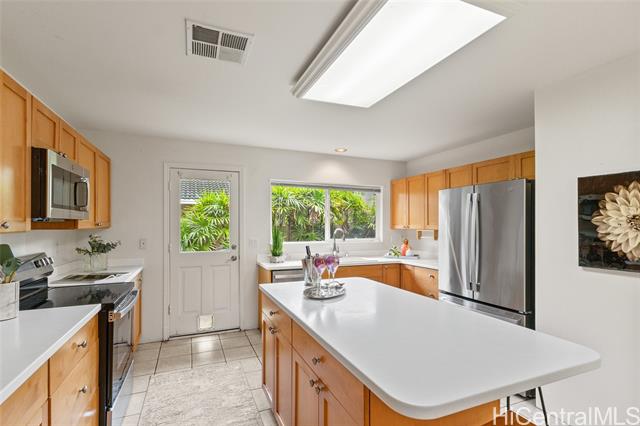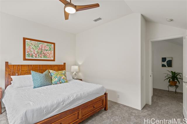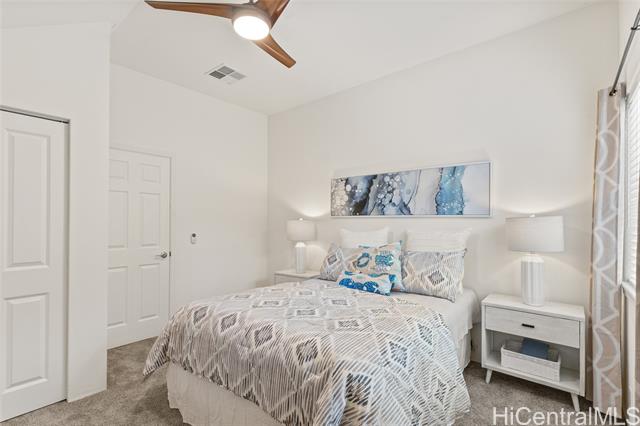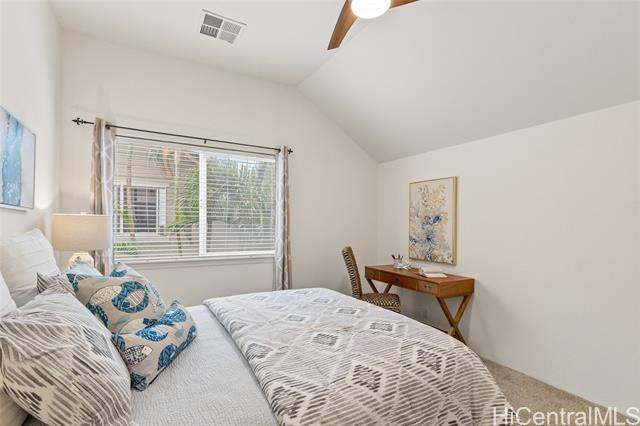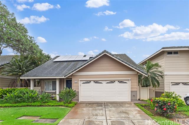FIRST OPEN HOUSE SUNDAY, APRIL 26, 2006 2:00-5:00PM. Welcome home. Remodeled 3-bedroom, 2.5-bathroom home in the prestigious gated community of Hu'elani at Ewa Gentry. Designed with energy efficiency in mind, the home features 36 owned PV panels that keep electric cost very low. The versatile layout offers a rare first-floor bedroom and full bath, with two additional bedrooms upstairs. Enjoy a modern open-concept kitchen with brand-new stainless steel appliances and premium finishes, plus the convenience of an attached 2-car garage and ample guest parking. The HOA provides exceptional value, covering roof maintenance, exterior painting, water, sewer, and insurance, while giving you access to resort-style amenities including a private pool, spa, fitness center, and clubhouse. Minutes from world-class golf courses and Ka Makana Ali'i shopping center. ---
