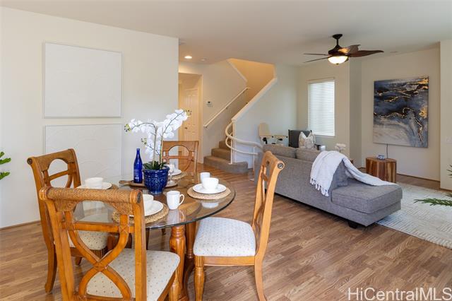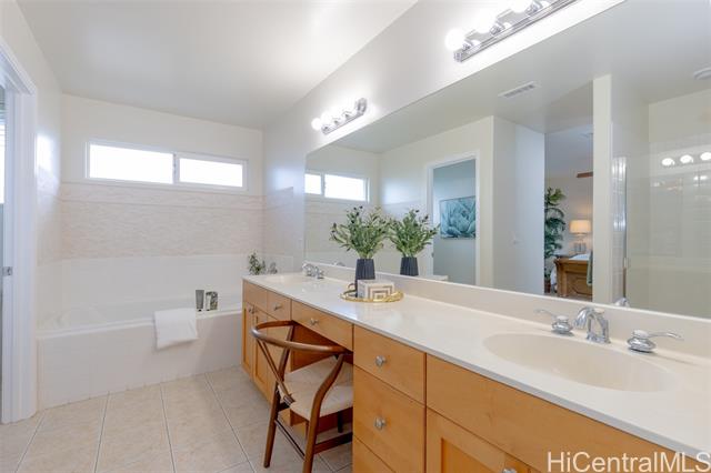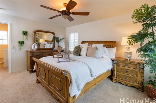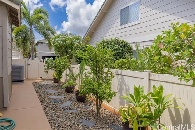 Welcome to the gated community of Hu'elani located in the Ewa neighborhood of Oahu, Hawaii. Pride of ownership is evident in this 3 bedroom, 2.5 bath home with central AC, enclosed two car garage and enclosed back yard with a covered lanai. The home has 36 photovoltaic panels and was freshly painted prior to coming on market. Resort like amenities, close proximity to golf courses, shopping and schools. The maintenance fee covers painting of homes every 10 years, roof maintenance/repair, front yard maintenance, yearly termite inspection, water & sewer, clubhouse, pool, gym and spa, the clubhouse & entry gate are monitored by video cameras, Site Manager and plenty of guest parking. You don't want to miss this special home and community!