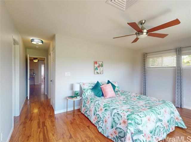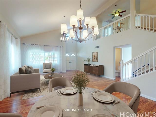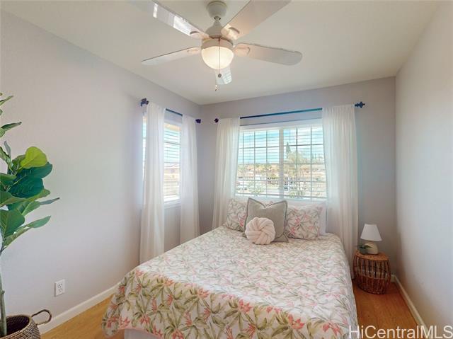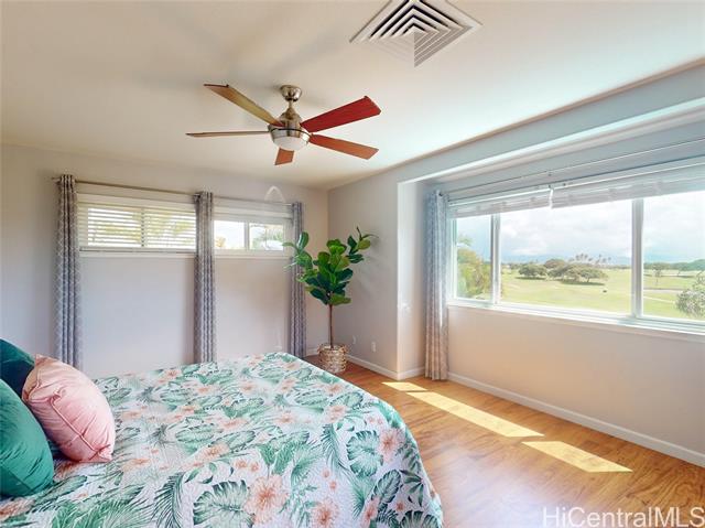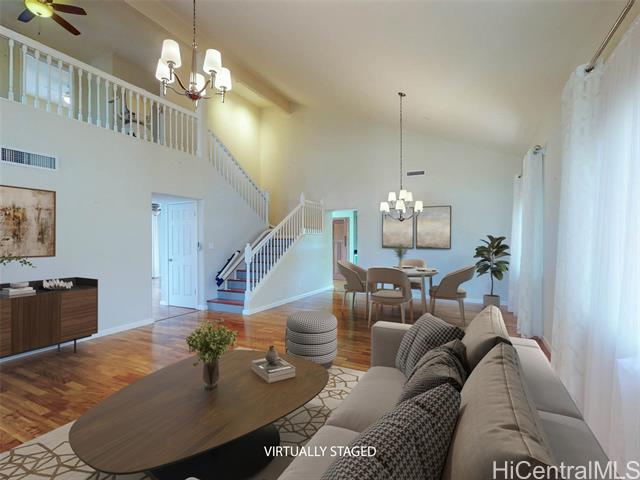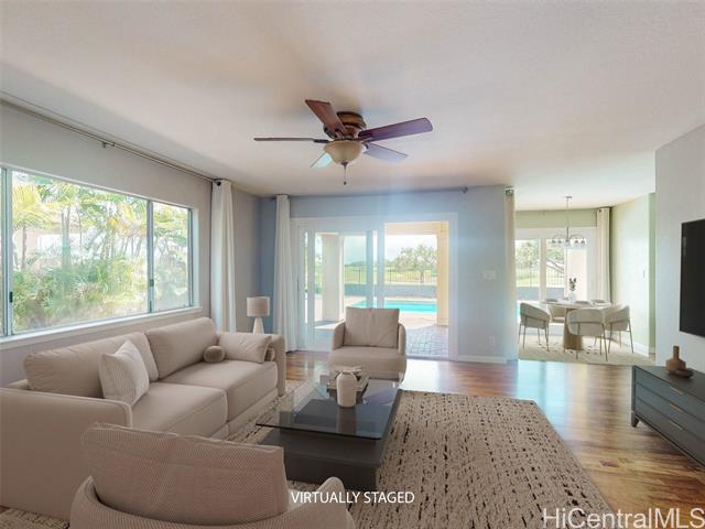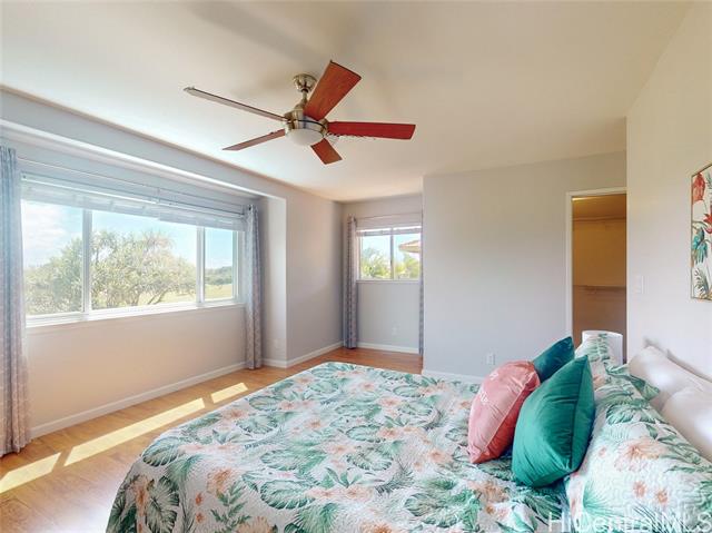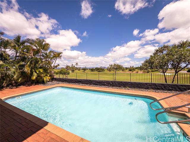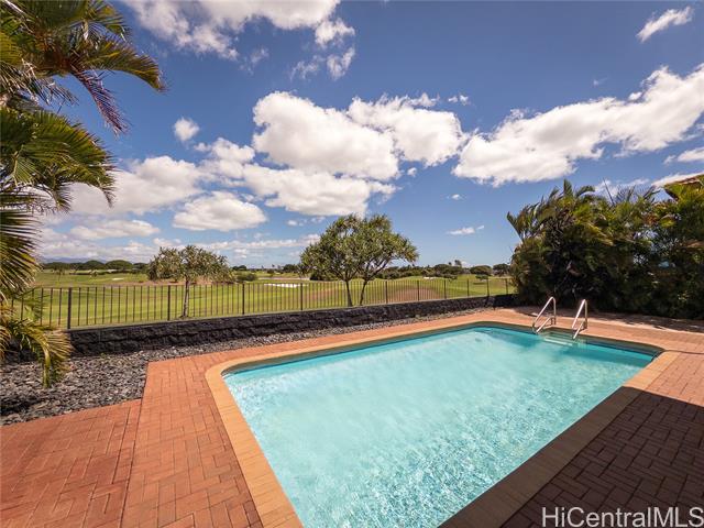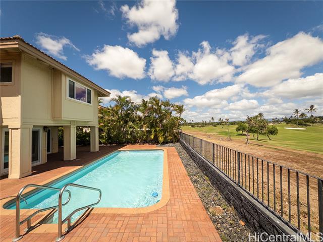 You’ve got to see this golf course view! This 4-bedroom, 2.5-bath, two-story home has plenty of space and amenities for living and entertaining. Downstairs features a large entry and living room with high ceilings, family room, breakfast nook, kitchen, laundry, half-bath, and two-car garage. Upstairs has all four bedrooms and two baths, including a full Primary Suite. The primary bedroom’s picture window overlooks the fairway of Kapolei Golf Course’s hole #2, giving you undisturbed views over the back nine of the course and beyond. Outside the home, you’ll enjoy a covered lanai/patio, pool, and landscaping. The lot configuration also gives you a longer driveway and more space for parking. You’ve got to see this one for yourself, so make an appointment today or come visit our open house! Welcome home! One or more images have been virtually enhanced.