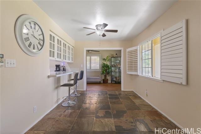 NO MAINTENANCE FEE & RARELY find expanded large bedrooms single family home in Kapolei Aeloa! This spacious 5-bedroom, 3.5-bathroom home is a rare and unique house. Must see in person to appreciate its true value! It offers a versatile layout, energy-efficient, and a prime location with NO maintenance fee. The home features TWO PRIMARY SUITES! Including a generously sized ground-floor suite, making it ideal for multi-generational living. A bonus room with a Murphy bed provides flexibility for use as a guest room, family room, or home office. Designed for energy efficiency, the property includes 20 owned PV panels, 9 leased PV panels, and a solar water heating system, helping to reduce utility costs. Upstairs enclosed patio serves as a sunroom, offering a relaxing space with beautiful mountain views perfect for you to unwind after a long day. Enclosed yard on the sides provides privacy, and it remains easy to maintain. Conveniently located near shopping centers, dining, parks, golf courses, and schools, this home also offers easy access to the H-1 freeway and the rail station. Schedule a private showing today!