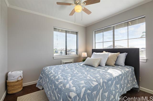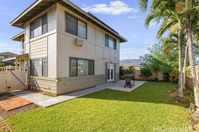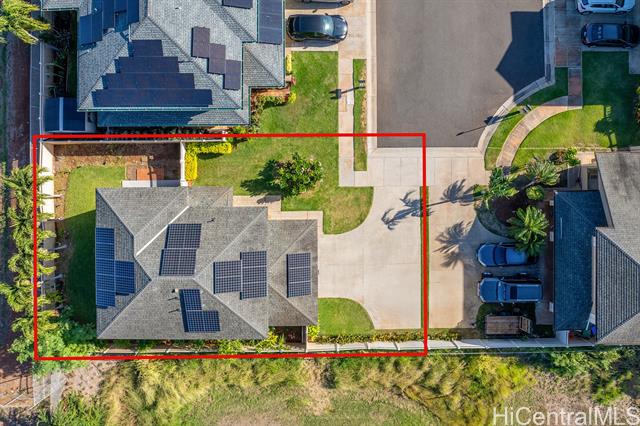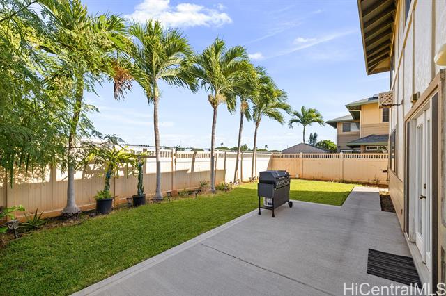 Welcome to one of the most desired homes in the Villages of Kapolei! Tucked at the end of a quiet cul-de-sac with no neighbors on two sides, this corner-lot property offers privacy and an oversized driveway and garage with parking for up to six cars. Enjoy owned PV panels with a Tesla backup battery, a new backyard slab perfect for barbecues, and a sidewalk surrounding the home with lush fruit trees—calamansi, dragonfruit, lime, moringa, and soursop. Conveniently located near Kapolei Middle School, shopping, restaurants, and the mall. Bedrooms are upstairs with living, dining, and kitchen areas downstairs. Make this your family’s forever home!