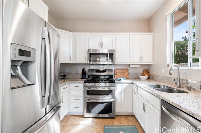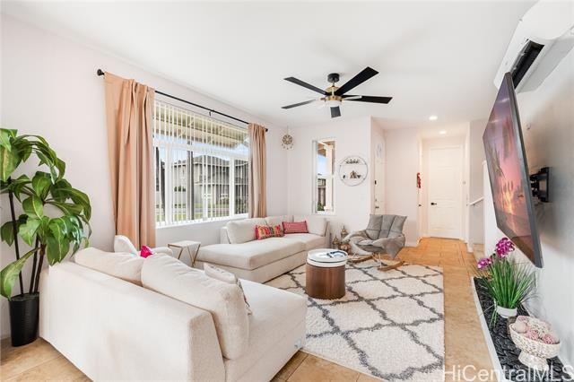 Move-In Ready - No Maintenance Fees - Kapolei Living Welcome to this beautifully maintained Kekuilani Palms home, ideally located in a sought-after planned community next to Kapolei Golf Club. Offering the space & feel of single-family living with NO maintenance fees, this home is a rare find in today’s market. Recent updates include new windows and a new roof currently in progress, providing added value and long-term peace of mind. Inside, enjoy a comfortable layout featuring four split AC units, an upgraded kitchen, newer carpeting, & updated blinds throughout. Golf course views from upstairs add a peaceful backdrop, while the primary bedroom on the main level features an upgraded walk-in shower and spacious walk-in closet. The oversized garage offers exceptional storage, with additional parking available in front of the home & along the street. Landscaped yard provides a private outdoor space for relaxing or entertaining. Conveniently located near schools, parks, shopping, dining, movie theaters, a community recreation center, Kapolei Community Pool, Barbers Point Beach. This home offers comfort, convenience, and lifestyle in one of West O‘ahu’s most desirable communities.
