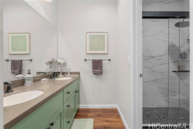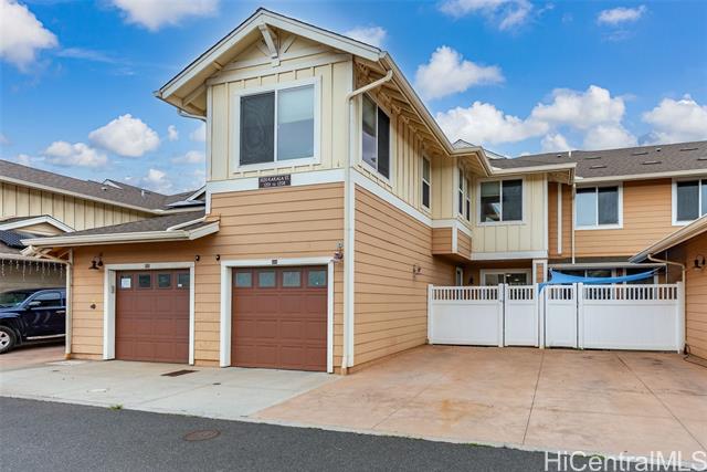 Welcome home to Awakea at Mehana, Unit #1204. This rare Flex Home offers nearly 1,900 sq ft of versatile living space with 3 bedrooms, 3 fully renovated bathrooms, and 4 parking stalls. The downstairs Flex unit includes renovated 1-bed, 1- bath, kitchenette, private courtyard, and direct garage access—ideal for a home business, extended family, guests, or investment! The garage features split A/C and epoxy flooring, perfect for parking or office use. The upstairs unit offers an open floor plan with 2 bedrooms, 2 baths, luxury vinyl tile flooring throughout and a small front yard ideal for pets or plants. Split A/C in all rooms, including the garage! All bathrooms renovated and home is in excellent condition. Enjoy Mehana’s resort-style amenities: pool, tennis & basketball courts, dog park, and playgrounds. Conveniently located near Kapolei amenities, shopping, dining, schools, and daily essentials. A fantastic opportunity—this won’t last schedule showing today!