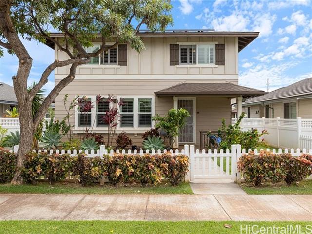 ***VA Assumable Rate at 3.25%*** Step into this beautifully upgraded 3-bedroom, 2.5-bathroom single-family home located in the sought-after Kukuna at Mehana community. This residence features an attached 2-car garage and offers stylish upgrades, including Pergo flooring in the living spaces and bedrooms, as well as Italian porcelain tile in the kitchen and bathrooms. Stay comfortable with split A/C units and ceiling fans in every room, complemented by elegant plantation shutters throughout. The owned 21-panel PV system, complete with an EV charger, offers energy efficiency and the convenience of home charging. Enjoy access to Mehana amenities, such as a swimming pool, BBQ area, clubhouse, jogging and walking paths, and several parks. Ideally located near freeway access, this home is just minutes from Kapolei’s beaches, shopping, dining, and the resort lifestyle of Ko Olina.