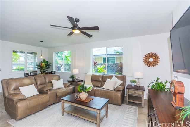 $50,000 PRICE ADJUSTMENT & VA ASSUMABLE LOAN OPTION! Welcome HOME! Clean & ready to move in 4b/2.5b SFH in La Hiki at Mehana - NO maintenance fees! Less than a mile to elementary, middle, & high schools. Less than 1/2 mile to FBI Building, 8 miles to JBPHH, 12 miles to Ft. Shafter, 15 miles to Schofield Barracks, 16 miles to Ford Island. Less than a mile from Kapolei’s “2nd City”, 7-11, Starbucks, VA center. Close to hospitals, malls, Costco, City & County offices, shopping, dining, & more. This BEAUTIFUL home features oversized tile floors & new carpet, 9' ceilings, an open floor plan flowing seamless to living, dining, & kitchen areas creating spacious living, remodeled primary bath w/walk-in shower, private fenced patio area, 440 sq. ft. 2-car garage & driveway. L.G. appliance suite w/smart features multi function oven & "Insta-View Quick Look" fridge. Built with energy cost efficiency in mind with double-pane oversized windows, plantation shutters, spray-foam insulation, 23 leased PV panels, solar water panels & skylight. Steps to community parks, basketball courts, kid's playground, dog park, rec. room & pool, walking paths, eye center, beauty/massage/nail salon. A MUST SEE!