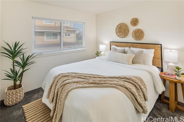 Experience the vibrant lifestyle of Manawa at Mehana! This 3-bed, 2.5-bath townhome combines modern upgrades with community convenience in the heart of Kapolei. The open-concept kitchen features granite counters, motion-sensor lighting, and flows into spacious living with brand new flooring. Unwind on your private lanai with sunset views or enjoy guest parking right outside your door. Mehana offers resort-style amenities—pool, BBQs, playgrounds, dog park, basketball courts, and scenic paths—all just minutes from Kapolei Commons, Ka Makana Ali‘i, and H-1. Best of all, this home is VA loan assumable, making it a unique opportunity for qualified buyers.