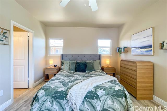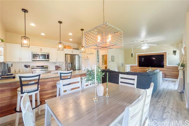 FIRST OPEN HOUSE on SUNDAY 4/19 from 2-5 PM. Welcome to modern living in the highly sought-after Nanala at Mehana. This meticulously maintained multi-level residence features 1,227 sq. ft. of living space with 2 bedrooms and 2 bathrooms. This home is move-in ready with a full suite of recently updated appliances and the convenience of central AC. The functional layout includes a private yard space and ample storage. Located in the heart of Kapolei, residents enjoy premium amenities at the Mehana Activity Center (MAC), including a fitness center, bike park, pool, BBQ areas, and playground. Ideally situated near Mehana Central Park, Ka Makana Ali’i, and the H-1 freeway. This home offers a vibrant lifestyle in one of Kapolei's premier master-planned communities.