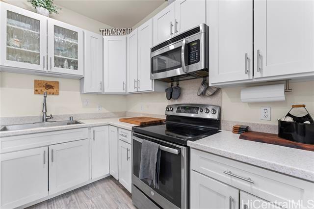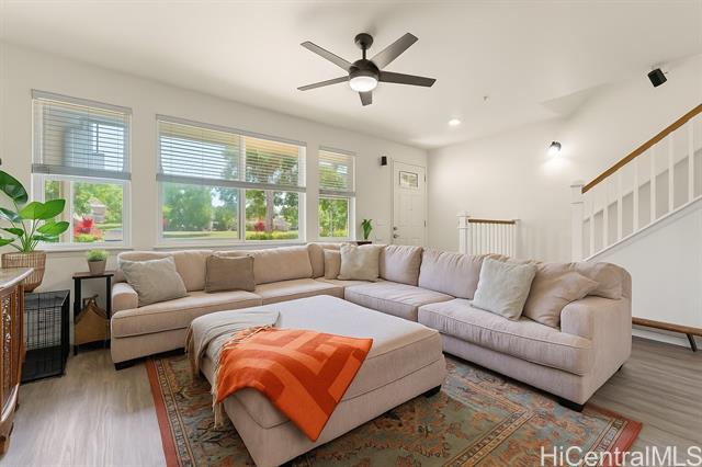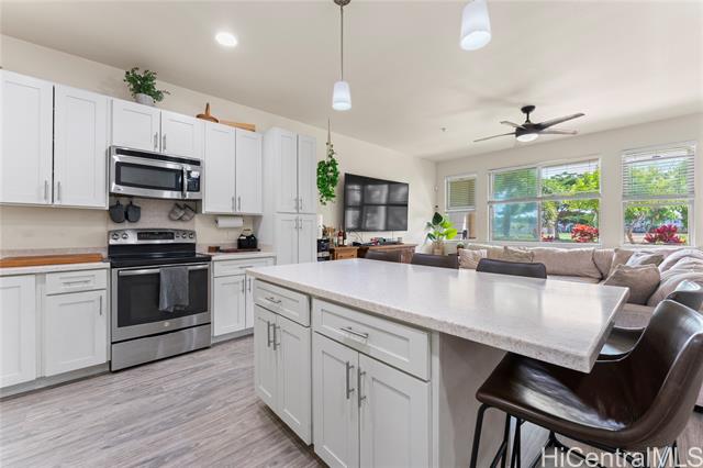 Welcome to O'ahu's "Second City"! Discover this stunning and highly sought-after 3-bedroom, 2.5-bath townhome in the vibrant community of Olino at Mehana in Kapolei. This beautifully updated home features remodeled kitchen cabinets, upgraded flooring, and an inviting open floor plan perfect for entertaining or relaxing. Recent updates include a new upstairs AC unit and kitchen fixtures. Enjoy the convenience of nearby shopping, dining, and entertainment, along with two parking spaces; one private garage and one open tandem stall. This home is located short drives to beautiful beaches, and lots of shopping options in proximity. Mehana residents enjoy resort-style amenities including a large pool, BBQ areas, parks, playgrounds, and the MAC center with a gym and party room. The neighborhood offers great local conveniences such as Dental offices, massage, salons, snack shops, barber shops and more. A wonderful home in a caring, tight-knit community. VA Loan of 2.375% interest rate, $2,887.75 monthly and loan balance $600,429.93.
