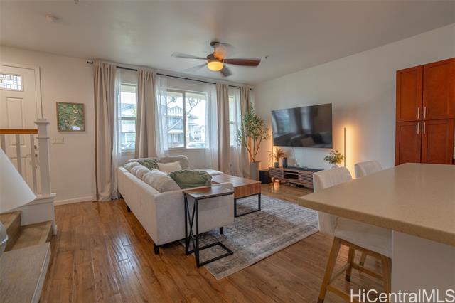 VA Assumable Loan at 4.717% with a balance of 734,153. This beautifully maintained 3BD/2.5BA townhouse offers 1,356 sq ft of comfortable, functional living; complete with a private yard, one-car garage, and split A/C to keep you cool year-round. Inside, you'll find quality finishes, in-unit washer and dryer, and a layout designed for real life. Step outside and enjoy everything Mehana has to offer: a resort-style pool, playground, gym, dog park, BBQ areas, and scenic walking paths.
