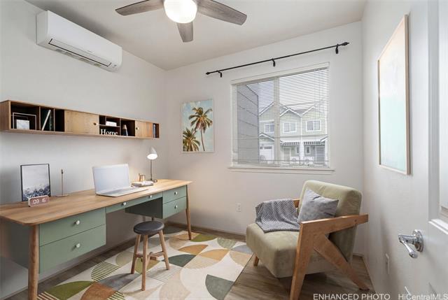 Discover the perfect blend of comfort and convenience in this charming 2-bed, 2-bath downstairs corner unit in Pulewa at Mehana, located in the heart of Kapolei. Keep cool with split ACs in every room. This inviting home also features stylish luxury vinyl plank flooring in the living areas and bedrooms, ceramic tile in the baths, newer appliances, and a brand-new water heater for peace of mind. Enjoy indoor-outdoor living with two spacious lanais and an enclosed grassy yard — ideal for relaxing, gardening, pets, or play. With two assigned parking stalls and close proximity to Mehana’s incredible community amenities — including a pool, gym, clubhouse, dog park, athletic courts, playgrounds, and parks — plus its very own on-site elementary school, Ho‘okele Elementary, you’ll love the vibrant, connected lifestyle this neighborhood offers. Don’t miss your opportunity to own a desirable ground-floor corner residence in one of Kapolei’s most sought-after communities.