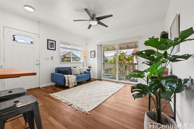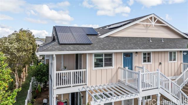 VA LOAN ASSUMABLE 2.25% interest rate, $1874.46 PITI. Balance ~390,027.44 -- Welcome to a stunning, energy-efficient 2-bedroom townhome in the desirable Pulewa at Mehana community! This home features 14 OWNED PV panels, split Acs, stainless steel appliances & a covered lanai. Residents of Pulewa at Mehana enjoy access to parks, a pool, playgrounds, walking paths, and the Mehana Activity Center — all within minutes of schools, shopping, restaurants, and beaches. Come & see this home today!