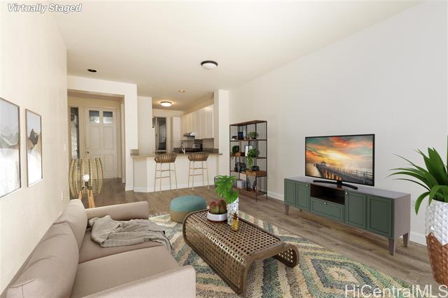 VA-friendly opportunity for Military Buyers! Welcome to Kekuilani Villas — a charming community in the heart of Kapolei! This 2-bedroom, 2-bath, 2-parking townhouse offers spacious living with nine-foot ceilings, luxury vinyl flooring, and fresh interior paint. The recently renovated kitchen features brand-new shaker cabinets, quartz countertops, and all-new appliances. The primary bedroom includes an ensuite bathroom for added comfort. Enjoy access to the Villages of Kapolei Community Center and pool. Conveniently located near Ka Makana Ali‘i Shopping Center, Kapolei Golf Course, parks, and restaurants, this is a wonderful opportunity to make it your own home or an investment property.