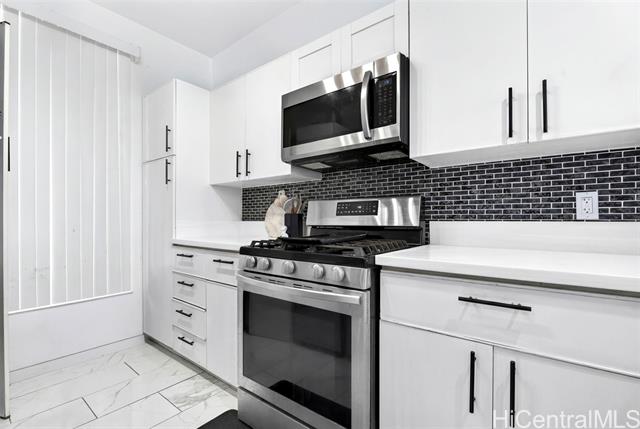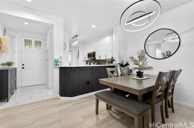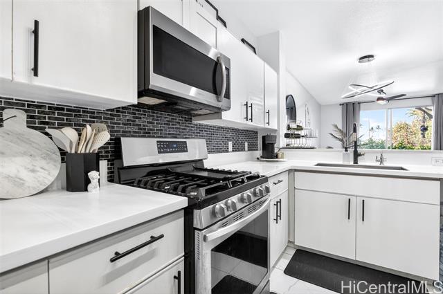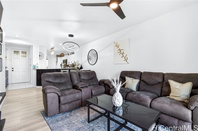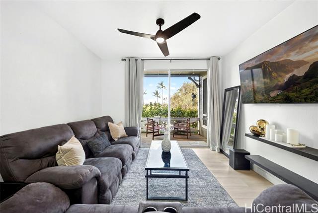 Welcome home to this move in ready and single level gem on the golf course! You'll love this stylish and upgraded unit that offers an ideal blend of convenience and tranquility. From the moment you walk in, you'll notice high ceilings, an open floor plan, and a stunning golf course view which epitomizes serene island living. Enjoy cooking meals in your modern kitchen with stainless steel appliances, quartz countertops, and tile backsplash. Bathrooms have also been updated with new vanities and quartz counter tops, plus no carpet throughout the entire home. Take in the beautiful view of the fairway from your patio while enjoying al fresco dining or your morning coffee. You can also take advantage of the nearby community pool for added relaxation. Located within the heart of Kapolei, you are close to schools, shopping, restaurants, beaches, & so much more. Experience the perfect balance of comfort and style when you come home today!
