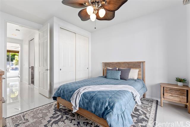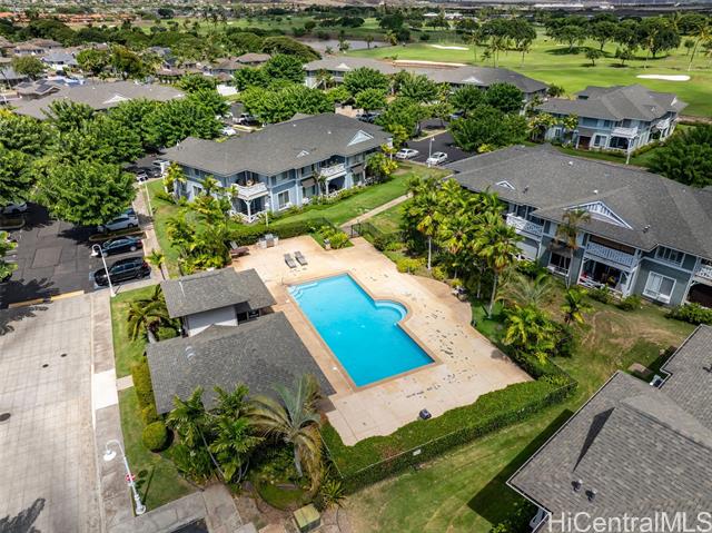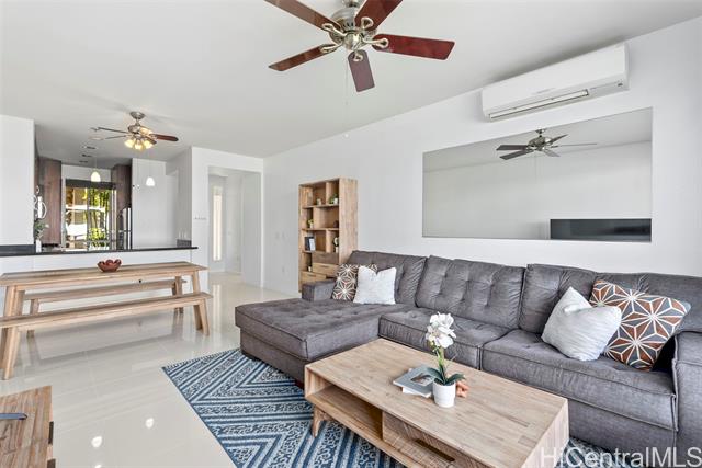 Don’t miss this gorgeously updated ground-floor townhome in the well-maintained Kekuilani Villas. This delightful 2-bedroom, 1-bathroom home with 2 assigned parking stalls features desirable golf course views overlooking Kapolei Golf Course. Inside, enjoy an updated kitchen and bathrooms, tile flooring throughout, and high ceilings that create a bright and airy atmosphere. Residents also enjoy access to community amenities including a pool and BBQ area, along with ample guest parking for family and friends. Conveniently located near Ka Makana Ali‘i Mall, shops, eateries, boutiques, daily necessities, and the rail, this move-in ready home offers the perfect blend of comfort and lifestyle.