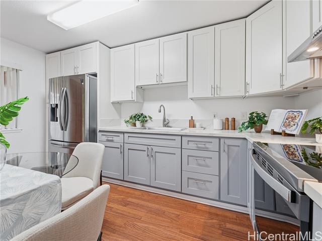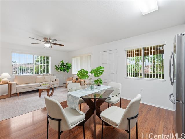 Welcome to A‘eloa Terrace in Kapolei, where comfort, convenience, and everyday island living come together in a well-established, pet-friendly community. Step inside to a thoughtfully updated 1-bedroom, 1-bath townhome with 2 parking stalls, featuring a renovated kitchen and bathroom, fresh interior paint, and well-maintained flooring throughout. Recent upgrades include a brand-new washer and dryer, new stove, stainless steel refrigerator, and water heater, offering both style and practical functionality from day one. Enjoy the ease of indoor-outdoor living with a private lanai and a fenced courtyard, creating flexible space to relax or unwind. A secured outdoor storage closet adds convenience and extra room for your everyday needs. Residents of A‘eloa Terrace enjoy access to a pool, clubhouse, recreation space, and on-site management. Ideally positioned near shopping, dining, parks, and schools, this home offers easy access to everything Kapolei has to offer.