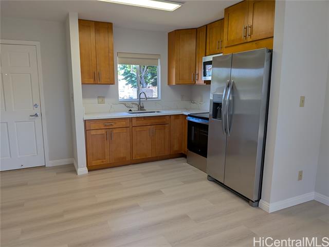 Great opportunity to own a single level corner end unit with two assigned parking stalls. Unit has been renovated with new kitchen and bath cabinets, granite counter tops, luxury vinyl plank flooring, paint, appliances, toilet and more. Unit is in walking distance to Kapolei Elementary School and Kapolei Regional Recreational Center. Located in the heart of Kapolei with easy access to shopping centers, Costco, Home Depot and numerous restaurants.
