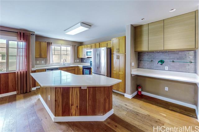 OPEN HOUSE on 4/11, SATURDAY from 2-5 PM. Well-located 3-bedroom, 2-bath townhome in Nohona I at Kapolei, offering a functional layout and tasteful upgrades throughout. This residence features a spacious open-concept design with abundant natural light and a seamless living flow. Wood flooring is complemented by custom wood accents on the walls and kitchen island, creating a cohesive and modern interior. Bathrooms have been upgraded with tiled showers and wall tile finishes, and the primary bedroom includes a generously sized walk-in closet. The unit offers a 1-car garage with one tandem parking stall for added convenience. Community amenities include a recreation pool and well-maintained common areas. The property is pet-friendly (buyer to verify). Conveniently located near Ka Makana Ali'i, Kapolei Commons, Kapolei Regional Park, golf courses, beaches, dining, and shopping. Enjoy nearby walking paths and recurring community events throughout Kapolei, with easy access to major roadways and the H-1 freeway. This is a short sale and will be sold "As Is". Please add the Short Sale Agent Guideline (supplement) to all offers.