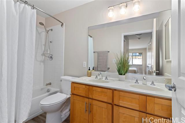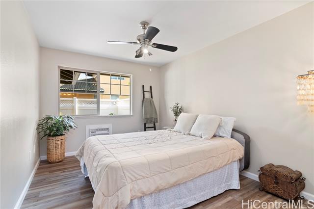 Discover the perfect blend of modern living and convenience in this townhome. Featuring two spacious bedrooms and two well-appointed bathrooms, this home boasts new luxury vinyl plank flooring and fresh paint throughout, providing a welcoming atmosphere. The open floor plan seamlessly connects the living, dining, and kitchen areas, making it an ideal space for entertaining or simply enjoying a relaxed lifestyle. Storage is abundant, with a primary bedroom that includes a large walk-in closet, ensuring that all your essentials are neatly organized. Step outside to the covered lanai, where you can unwind in your generous fenced yard—perfect for outdoor gatherings or quiet moments in nature. This townhouse is not just a home; it’s a lifestyle, with access to the Villages of Kapolei recreation center and pool, offering additional leisure and fitness options right at your doorstep. Located in a prime area, this property is just moments away from schools, shopping, and entertainment, with easy freeway access for your commuting needs. Includes a single-car garage and additional parking. You will not want to miss the opportunity to make this exceptional property your own!