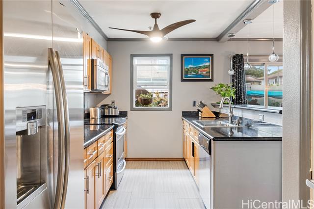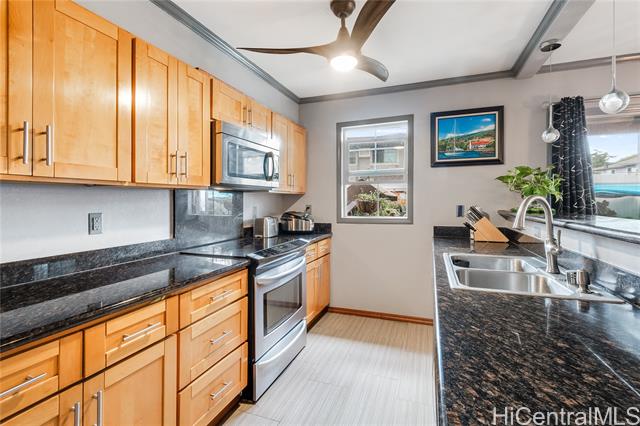 Welcome to Nohona II your new home in Kapolei! This beautiful home features, elegant crown, molding, updated flooring throughout, & sleek open concept living area. The primary suite offers a spacious walk-in closet and completely renovated bathroom. Enjoy the convenience of a full-size washer and dryer in unit plus your own private yard space – perfect for morning coffee or letting your fur babies out. Park easily in your one car garage with tandem parking, plus tons of guest parking available. Walk to the Villages at Kapolei rec center that features three different pools, perfect for families and staying active. This community is known for its quiet, family, friendly atmosphere with tree line street and well-maintained common areas. Located in one of Kapi most desirable neighborhoods, you are minutes from Ka Manana Al'i shopping center, top rated schools, the rail station for easy, Honolulu, commuting, great restaurants, and entertainment. Plus, enjoy quick, freeway access to the rest of the island. This ideally situated home offers the perfect blend of peaceful residential living with Urban convenience.