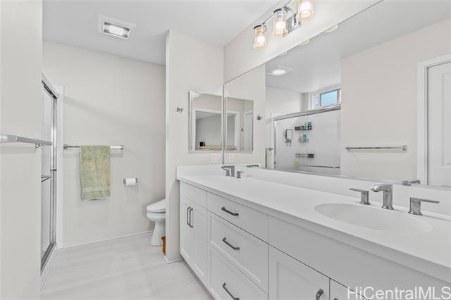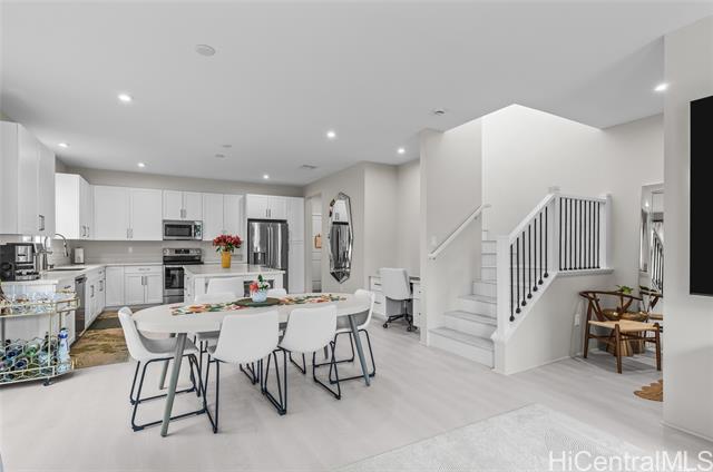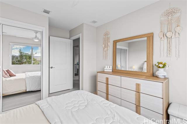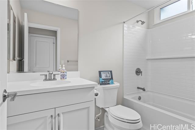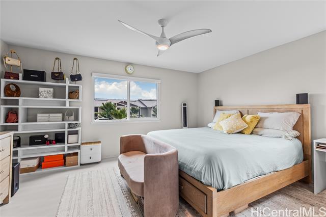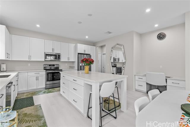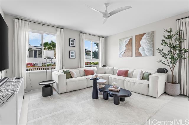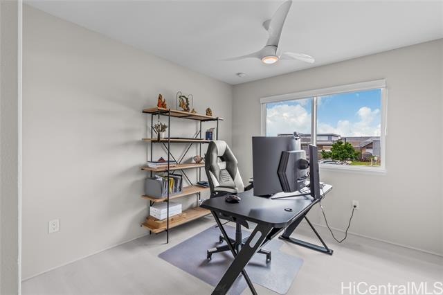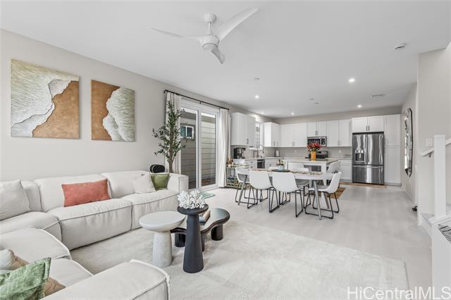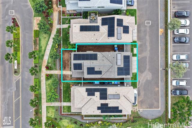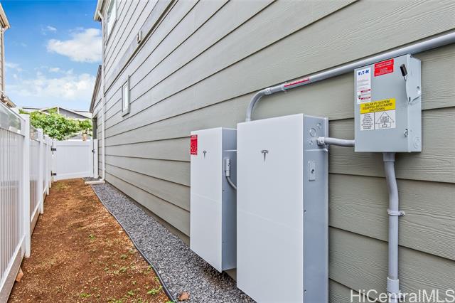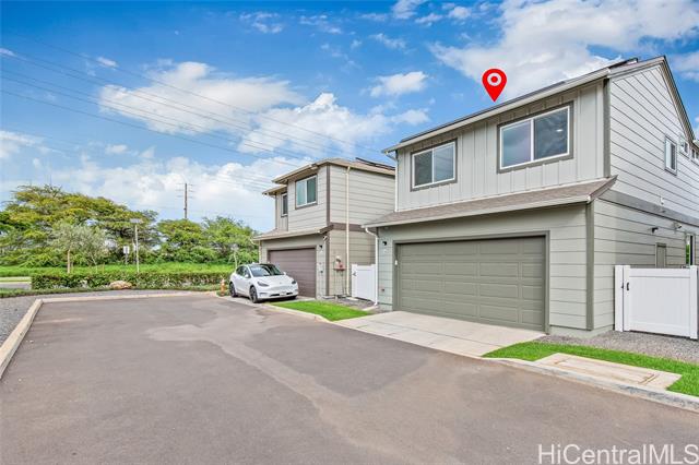 Central AC, 1734 sf, 3-bedroom, 2.5-bath home with 2 car garage in the highly sought-after Gentry community of Ka Ulu offers a rare combination of modern luxury, privacy & extreme energy efficiency. Built in 2023. Perfectly positioned at the entrance of the neighborhood for easy access. Minutes away from Costco,Target & the premier shopping & dining at Ka Makana Alii, KoOlina & other beaches. The open-concept living areas, with Luxury Vinyl Plank flooring, are perfect for entertaining. Kitchen has crisp white cabinetry, a high-end Reverse Osmosis (RO) water filtration system, energy efficient GE kitchen appliances & a high-capacity washer & dryer. The standout feature of this property is the fully-owned, 18-panel Tesla Solar system paired with two Tesla Powerwalls (a $36,000 value). This setup is designed to provide minimal electric bills while offering full-home backup power. The home is further enhanced with motorized blinds & upgraded designer ceiling fans throughout both living spaces & all bedrooms. This home offers superior privacy with a wrap-around yard, no homes directly in front & the 2-car garage opening onto a private lane. Lots of guest parking around the home.