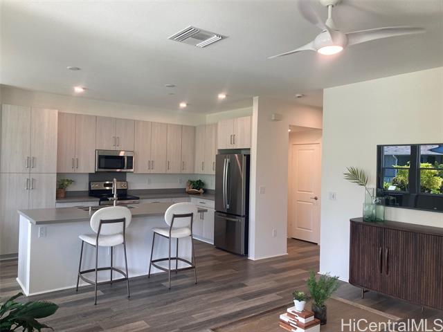 Brand new construction at Ka'ulu By Gentry! This beautiful 2 bed, 2.5 bath home has a large open kitchen, living and dining area and a massive 2 car garage. Upstairs are 2 bedrooms both with in-suite baths. 9' ceilings, Designer cabinets, Hi-mac counters, Kohler fixtures and so much more! The energy saving features include Central AC, Seer2 (16+), 80 gallon solar hot water tank,spray foam insulation, LED lighting, Digital thermostat, Insulated garage door, EV ready, Low-E vinyl windows and Energy star stainless steel appliances. All appliances are included! Flooring is Luxury Vinyl Plank throughout. The seller is offering a 3% credit to be used for closing costs or to buy down points/interest rates. Our community is in a fabulous location, close to beaches, shopping, entertainment the freeway and so much more! BUYERS AGENT MUST ACCOMPANY BUYER ON THEIR FIRST VISIT TO THE MODEL HOMES.
