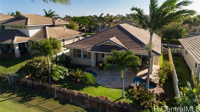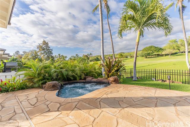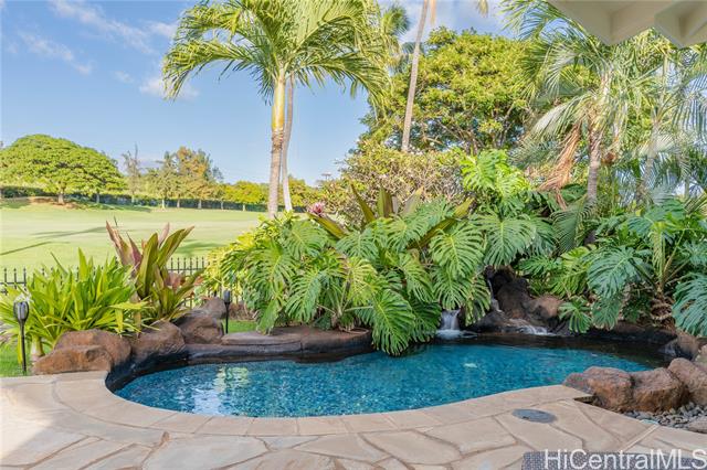 Live the Ko Olina resort lifestyle every single day with your own Pool & Spa! Welcome to your new home in Ko Olina, where luxury and leisure meet. Nestled along the 14th fairway of the Ko Olina Golf Course, this fully furnished Ko Olina Kai Estate is more than just a home, it's a one-of-a-kind opportunity! This grand, fully furnished, single-level 3-bedroom, 2.5-bathroom estate is designed for making memories. The open-concept layout seamlessly connects the kitchen, living, and dining areas, creating a lively and inviting space for all your entertaining needs. Step outside and get ready to be wowed! Your private backyard oasis awaits, complete with an amazing inground pool and spa. The extended lanai along with the pool and spa make it a perfect spot for entertaining, lounging in the sun, or simply taking in the beautiful golf course views. This is a rare opportunity to own a slice of paradise. A fantastic tenant is already in place and is open to extending. This makes it an ideal investment for anyone looking to own a piece of the Ko Olina lifestyle! Items: Newer hot water heater, garage door motor, stove/oven, pool pump. Whole house water filtration system, alarm system.