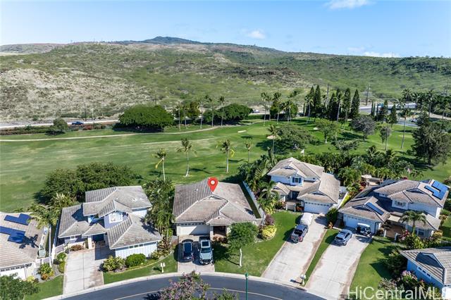 Priced to sell! Rare opportunity to acquire a prime, single family home in the gated Ko Olina Kai Golf Estates community. This beautifully-maintained single level home boasts 3 bedrooms, 2.5 bathrooms, and a 2 car garage. Upgrades made in 2014 include new hardwood flooring and plantation shutters. The patio also has an association-approved extension. Great for entertaining friends and family while overlooking the 14th hole at Ko Olina golf course. The spacious primary suite comes with dual vanities. Enjoy resort like amenities such as a BBQ area, swimming pool, and a recreation room. Conveniently located near restaurants, shops, hotels, and the lagoons. *NOTE: Photos were taken while tenants were occupying the property. It is now vacant. Furniture in photos are no longer there. Recent updates include new exterior paint, spalling work, and roof tile replacements.