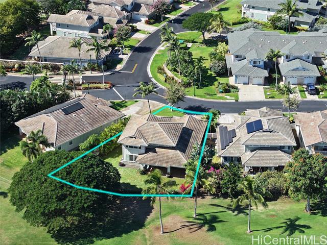 Resort style living at its best with golf course views on the 15th green! The expansive backyard is a tropical paradise completely fenced in for your pets or small children. Custom designer upgrades with acacia wood floors, plantation shutters, crown molding and tiled lanai. Spacious private primary suite on the 2nd floor. The first floor den w/separate entry can be used as a gym, office, or converted into a 4th bedroom. Stainless steel appliances in the kitchen. Living room has vaulted ceilings and windows with lots of natural light. Entertain on your spacious lanai or enjoy a morning sunrise. Drive your golf cart to any of the four lagoons, Aulani Resort and Four Seasons Resort. Perfect as a vacation home or investment! Access to Ko Olina Beach & Sports Club which includes a fitness gym, tennis courts, fitness classes, and much more!