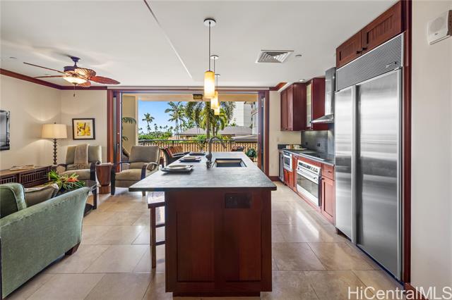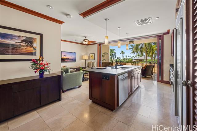 Discover Villa O-202 in the Ocean Tower at the Beach Villas at Ko Olina, where comfort and resort living come together. This 3-bedroom, 2.5-bath villa offers breathtaking views of the pools and ocean, enjoyed from your private lanai. The open floor plan features a gourmet kitchen with high-end appliances, spacious living and dining areas, and tasteful finishes that create a relaxed yet elegant atmosphere. Designed for both full-time and part-time living, this home provides the ideal balance of privacy and convenience. A private elevator, shared with just one other residence, offers easy access from the garage directly to your villa. Ko Olina’s resort community features four pristine lagoons, a championship golf course, spa services, fine dining, shopping, and year-round activities. Approved for vacation rentals, this villa offers excellent income potential when not in use. Experience sunsets over the Pacific and the ease of true resort living. Your island escape awaits!