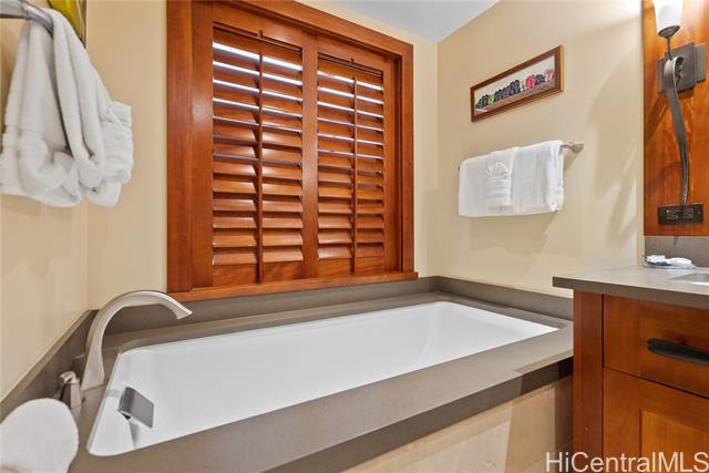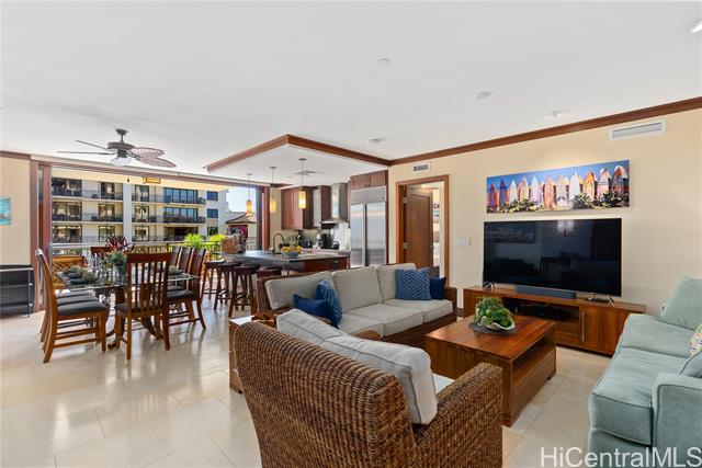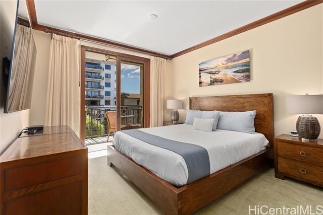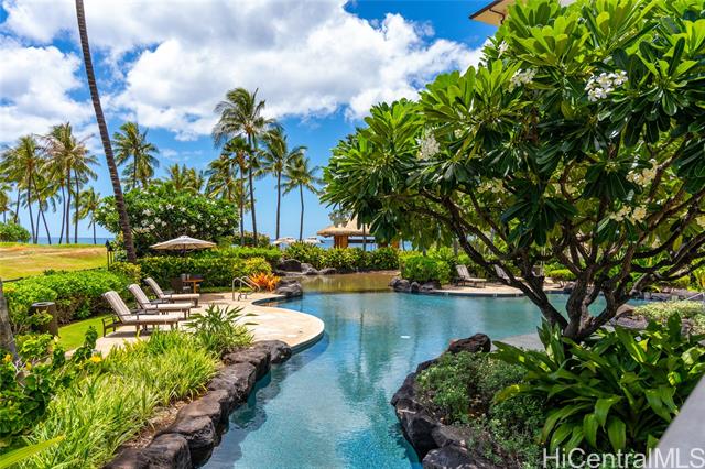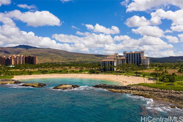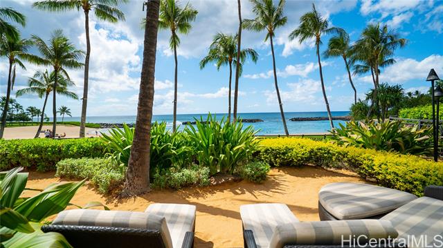 Experience the pinnacle of resort living in this rare 3-bedroom, 3-bathroom sanctuary at the prestigious Beach Villas at Ko Olina. Perfectly positioned in the Ocean Tower, this residence blends island elegance with unmatched utility, featuring TWO deeded parking stalls (OT-004 & BP1-111) and the highly coveted, extra-large deeded storage locker #L65. Step through mahogany pocket doors to a spacious lanai where ocean breezes meet views of lush tropical grounds and the Pacific Ocean. The gourmet kitchen, a masterpiece by Chef Roy Yamaguchi, is equipped with Sub-Zero and Wolf appliances, honed granite, and a wine fridge. Refined touches like travertine flooring and mahogany crown molding flow throughout the meticulously maintained interior. As a legal short-term rental, O-411 offers a truly turnkey opportunity to own a piece of paradise just steps from Ko Olina's pristine sandy beach lagoons. Indulge in world-class amenities: lagoon pool, heated lap pool, state-of-the-art fitness center, sauna, steam rooms, and the exclusive beachfront bar. Luxury, convenience, and sunset views await in this world-class destination. The sale of this Villa includes future short-term rental bookings.