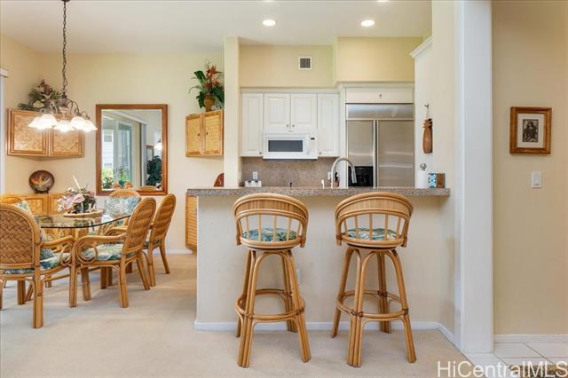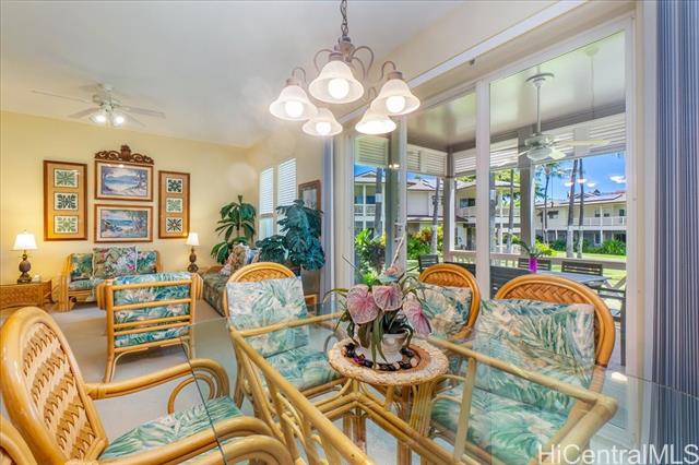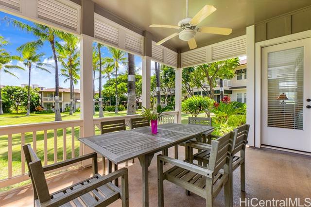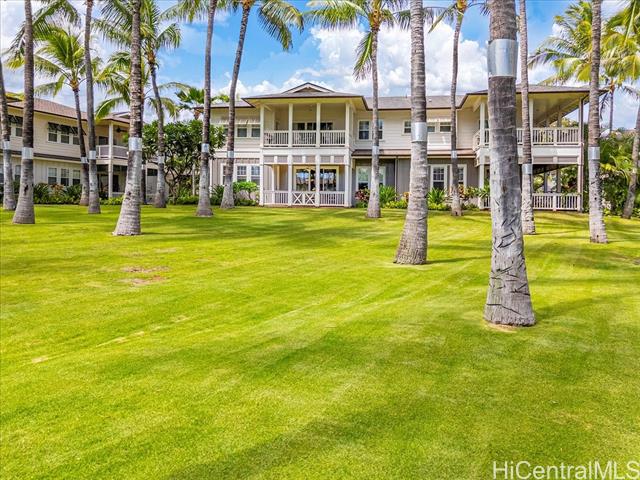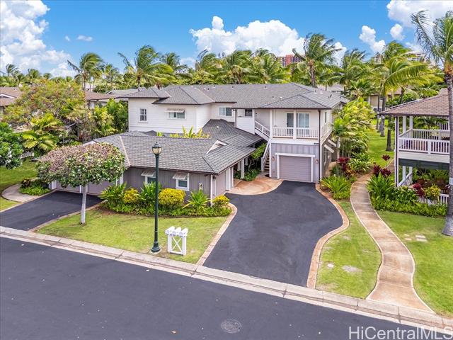 Experience island living in this beautifully appointed Ko Olina townhome, blending luxury with classic Hawaiian plantation style. This 2BR/2BA residence is ideal for 30-day rentals or a private retreat. Open-concept layout features a gourmet kitchen, bright living areas, and seamless indoor-outdoor flow to a spacious covered lanai with peaceful garden views. Located in the gated Coconut Plantation, just moments from pools, spa, lagoons, golf, dining, shopping, and walking paths. Features include walk-in closet, hidden storage, 1-car garage plus additional parking. Positioned along the Ko Olina Golf Course for added privacy and tranquility. Turnkey and fully furnished, including TVs, kitchenware, linens, and beach gear. Vacant and easy to show. Sold As Is. Seller prefers Elizabeth Spalla TG Pearlridge Branch. Enjoy resort-style amenities including multiple pools, BBQ areas, and lush tropical landscaping throughout the community. Close to world-class resorts like Disney Aulani and Four Seasons, with easy access to beaches and sunset views. Perfect as an income property or second home in one of Oahu’s premier resort destinations. Rare opportunity in highly desirable Ko Olina resort.