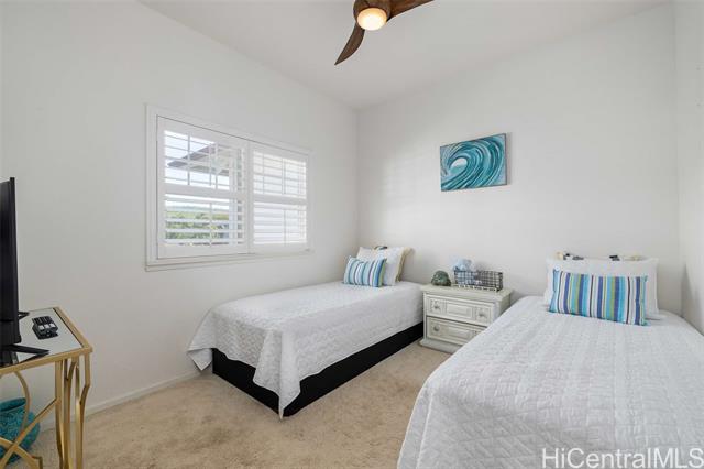 Enjoy resort living in Ko Olina's Coconut Plantation! This fully furnished 2-bedroom has an additional bonus room with 2 single beds, to sleep up to 6. Great for an investment property for (minimum) 30 day, shorter term rentals. The lanai overlooks the private hot tub, the perfect space for relaxation. 1 car garage + 1 assigned open parking space. This gated community has 2 pools, BBQ area and is beautifully landscaped. Minutes from the Ko Olina lagoons, golf course, shopping, and dining, for convenience.