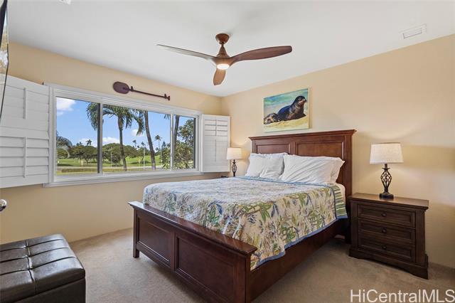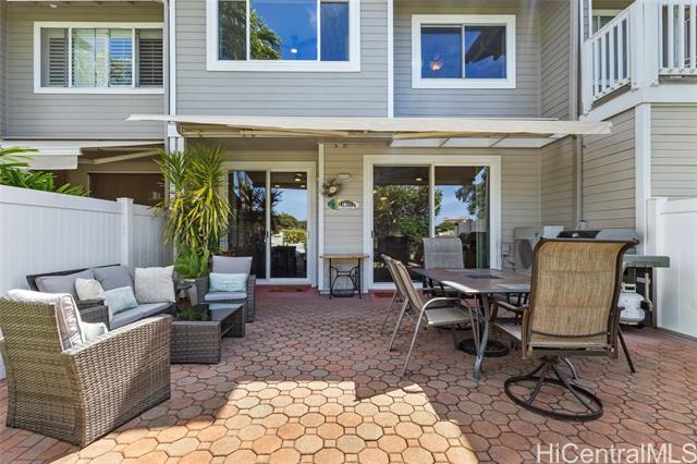 Welcome to resort-style living in the highly desirable Ko Olina Fairways community! This beautifully renovated 3-bedroom, 2.5-bath townhome in Ko Olina Fairways lives like a single-family home and features one of the largest yards in the community—one of only a few homes with such expansive outdoor space. The private yard provides a rare opportunity for outdoor entertaining, relaxing, or enjoying the island breeze. The home has been fully renovated throughout, featuring all-new flooring, updated kitchen cabinets, and modern finishes, creating a fresh and move-in-ready interior. Stay comfortable year-round with central air conditioning and an open, light-filled floor plan designed for both everyday living and entertaining. Enjoy peaceful golf course views overlooking two different sections of the course, offering beautiful greenery without being directly on the course. Residents also enjoy access to community amenities including a pool, spa, and BBQ areas. Located just minutes from Ko Olina’s famous lagoons, marina, championship golf course, and world-class resorts, this home offers the perfect blend of privacy, luxury, and island lifestyle.