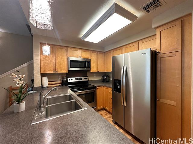 Welcome to your dream home at Ko'Olina Hillside Villas! Beautiful townhouse offer 3 bedrooms, 2.5 baths, and an attached 1-car garage plus an additional parking space. Features include a spacious open floor plan, high ceilings, wood shake roof, and a private covered porch for enjoying tropical breezes. The kitchen boasts modern appliances and ample storage, while the primary suite includes an en-suite bath. Fully furnished & Move-in Ready - all furniture, décor and appliances included. As a Ko Olina Community Association member, you'll have private access to premium amenities including a fitness center, tennis courts, and fitness classes. Conveniently located near Ko Olina-world-class LGPA golf course, Four Seasons Resort, Disney's Aulani Resort, breathtaking lagoons, marina, and premier dining and shopping experiences. HOA covers landscaping, insurance, security, amenity upkeep, utilities for common area and reserve funds. Secure long-term investment with fee simple ownership in Hawaii's premier resort community as a primary residence, vacation retreat or income producing rental. VA assumable loan to qualifying Veteran. 5.875% Balance -$788,000, Payment $5059