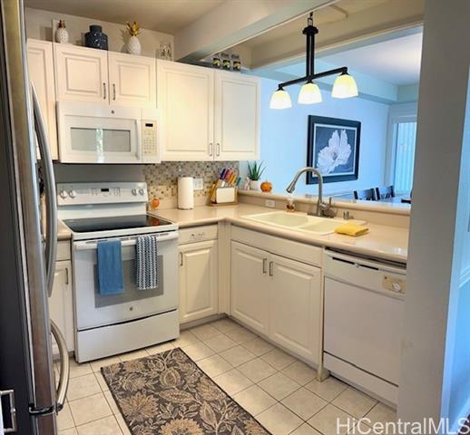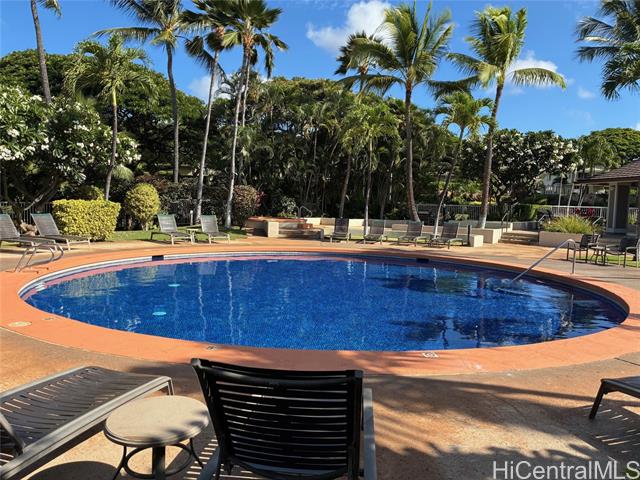 Are you looking for Peace along with the Joy of Ko Olina? Find serenity in this lovely home, nestled in a calm, quiet area, offering gorgeous golf course views from the lanai. View open green space and trees, from the surrounding living room and bedroom windows, which invite energizing light. This home has been well cared for, and upgraded with tile, laminate flooring, custom paint, and newer appliances, All three air conditioners are newer, and have been serviced regularly. If a workshop is in your future, you will enjoy the oversized two car garage which is ready to accommodate all your hobbies, as well as the vehicles. You also have two driveway parking places and a lengthy bank of guest spots for your friends! This home has no one above and sits over garages beneath. It is a beautiful walk to the beach, or lunch, under canopies of Monkeypod trees. New shops have been joining the current array of established boutiques and restaurants. The Sports Club membership is included in your HOA fees, and includes a gym and quite an offering of many different classes and sports activities. Don't forget to visit our marina, providing water excursions for all, and a home for your boat!