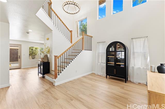 Dream Home Alert! This beautifully remodeled home with a detached, full-sized garage is nestled in the highly sought-after Ocean Pointe neighborhood. Featuring brand-new appliances, custom-built cabinetry, luxury-sealed marble countertops, and countless upgrades, this home exudes elegance and modern charm. The open-concept floor plan, complemented by soaring vaulted ceilings, creates a seamless blend of beauty and spaciousness. One of the rarest finds in Ewa, this home boasts sleek, contemporary finishes and a generously sized lot with ample yard space. Just steps away from a secluded park, it offers a serene and family-friendly environment with top-rated schools nearby. Luxury vinyl flooring throughout, paired with fresh interior and exterior paint, adds a move-in-ready appeal. Plus, enjoy the added bonus of low HOA fees! With motivated sellers and high demand, this gem won’t last long—schedule your showing today!