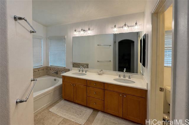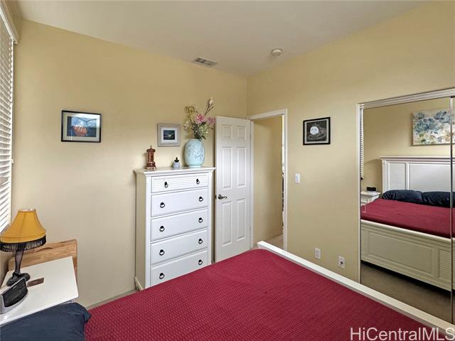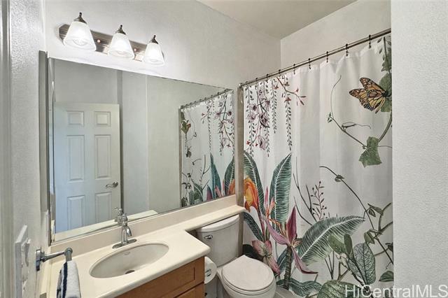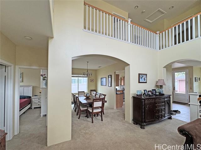 This Lovely 402 model Executive Home offers Relaxed Island Living. Bright, open floor plan featuring 4 nice size bedrooms, 3 full bathrooms, 3 parking and located on a very desirable quiet street with a private community park. There is a large bedroom and full bath downstairs perfect for guest, family or office. 3 Bedrooms upstairs. The Master has a large walk-in closet. Large Luxurious bathroom with separate shower and tub. The other bedrooms are generous in size sharing a Jack n Jill bathroom. You will feel the comfort of this home immediately walking through the entry with the High windows and cathedral ceilings capturing the natural light throughout the house. 34 owned PV solar panels on the NET METERING agreement with HECO to lower electric bills. 2 Solar hot water heaters with 3 panels. Replaced original AC outside with a large Rheem and upstairs AC handler. This home is very spacious inside and outside for entertaining and your own everyday comfort and enjoyment. Minutes away from the beach, golf courses, shopping, schools and so much more. This is a great opportunity with all this home offers!