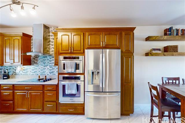 Back on Market. Well-located Ke Aina Kai townhome in the desirable Ocean Pointe community of Ewa Beach. This residence features ceramic tile flooring on the main level and wood flooring upstairs, along with custom wood floating shelves in the dining and living areas. The updated kitchen includes a built-in wall oven and microwave, and the bathrooms have been tastefully upgraded. Enjoy a private outdoor area with a spacious backyard extending from the lanai, providing functional outdoor living space. The Ocean Pointe community offers resort-style pools, well-maintained parks, sports courts, and scenic walking paths. Conveniently located near new shopping centers, restaurants, and everyday services, with close proximity to Ewa Beach’s coastline and popular beaches. Easy access to major roadways supports commuting and daily travel. A well-cared-for home in a prime West O?ahu location.
