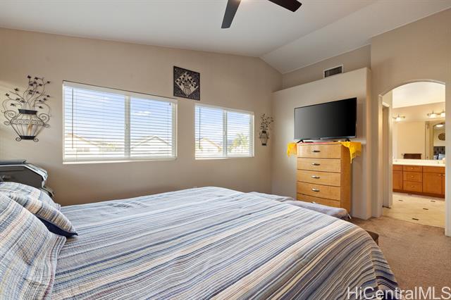 Spacious 4-Bedroom , 3- bath Single Family Home in Ocean Pointe community of Ewa Beach. This popular layout offers one bedroom and full bath on the ground floor—perfect for guests, multigenerational living, or a home office PLUS a 3 car garage. Inside, you’ll find a bright and open main living area with great natural light and plenty of room to personalize. The kitchen flows seamlessly into the dining and living spaces, creating an inviting environment for everyday living and entertaining. All three additional bedrooms are located upstairs, including a spacious primary suite with its own ensuite bath and generous closet space. A fully fenced yard provides privacy and a blank canvas for outdoor enjoyment, gardening, or future improvements. The home also features a detached 2-car and 1-car garage and additional street parking nearby. For showing requests contact listing agent or Sentrikey. First Open House will be on Sunday January 4th.
