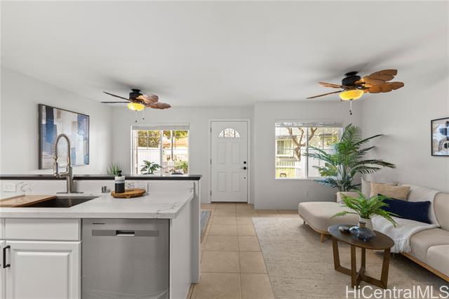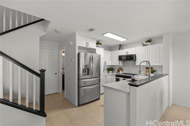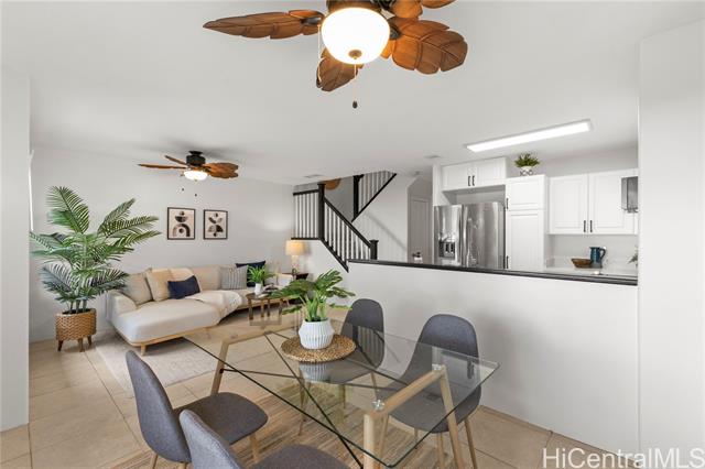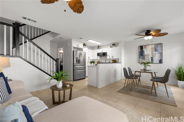 Welcome home to this bright and updated 3-bed, 2.5-bath townhome in the popular Mariners Place. From the moment you walk in, you’ll feel how open and welcoming the space is—your kitchen, dining area, and living room all flow together, making it easy to cook, relax, and spend time with loved ones. Half-bath conveniently located on the main floor - perfect for entertaining. The upgraded kitchen includes stainless steel appliances and beautiful quartz countertops and backsplash. The first floor features easy-to-maintain tile, while the upstairs bedrooms offer cozy carpet and a walk-in closet in the primary bedroom. With no neighbors above or below and your own attached 2-car garage, the home truly feels like a private retreat. You’ll also love the fenced-in yard, perfect for pets, morning coffee, or a little outdoor downtime. Central AC keeps the home cool and comfortable year-round. Full size washer-dryer in the garage. Mariners Place is known for its quiet streets, pocket parks, and friendly feel—plus you’re just a short distance from restaurants, shopping, and everyday conveniences. This is a wonderful opportunity to settle into one of Ewa Beach’s favorite neighborhoods.