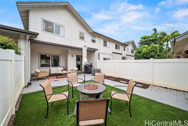 SHORT SALE = GREAT DEAL! Act now—this is a deal of a lifetime! This spacious 3-bedroom, 2.5-bath townhome features a private fenced yard and a detached 2-car garage. Enjoy modern amenities like keyless entry, an open floor plan with ceramic flooring downstairs and bamboo upstairs, plus central AC. The kitchen, remodeled in May 2024, includes new stainless steel appliances, butcher block counters, a tile backsplash, updated cabinets, and an upgraded sink. The backyard is a relaxing oasis with pet-friendly turf, stone edging, rubber mulch, and large pavers. Move-in ready and conveniently located just minutes from Ka Makana Ali’i Mall, Wai Kai Surf, Hoakalei Country Club, and various restaurants.