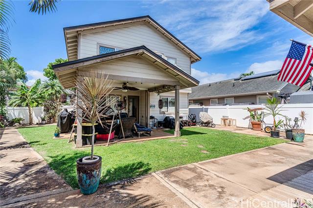 Discover the kind of home buyers wait for—a spacious 3-bedroom, 2.5-bath residence with a 2-car garage designed for comfortable island living and effortless entertaining. From the moment you arrive, the home draws you in with an inviting layout that opens to a generous living and family room, creating the perfect place to relax or host friends and family. Toward the back of the home, an expansive kitchen and dining area becomes the true gathering space, flowing seamlessly to a peaceful covered lanai and a sizable fenced backyard—ideal for enjoying Hawaii’s year-round outdoor lifestyle. Upstairs, all three bedrooms provide privacy, including a standout primary suite featuring soaring vaulted ceilings, dual closets, and a spacious walk-in closet that buyers love. Major upgrades add both value and peace of mind, including 21 leased PV panels, a new roof installed in 2022, and newer appliances including an oven, dishwasher, and microwave. Homes that combine energy efficiency, thoughtful upgrades, indoor-outdoor living, and space to entertain rarely stay available long—making this an opportunity savvy buyers will want to act on quickly