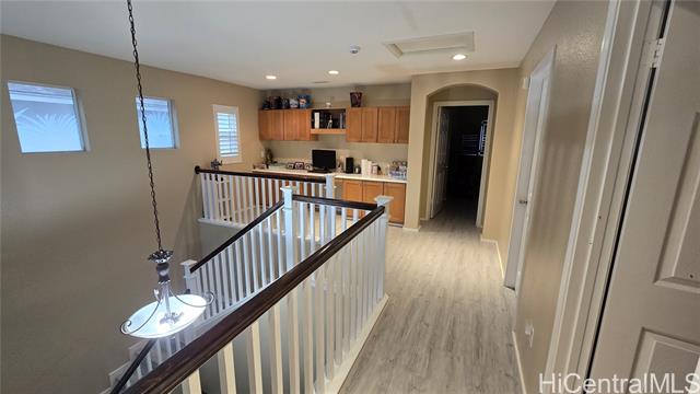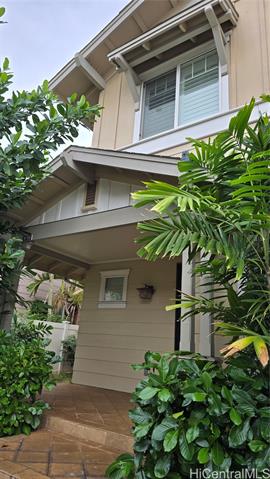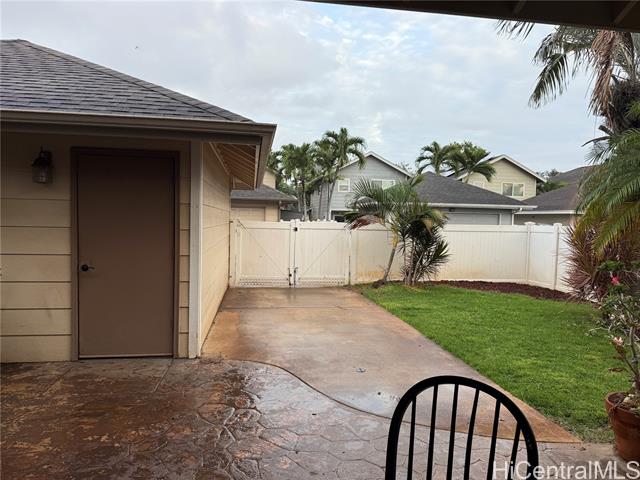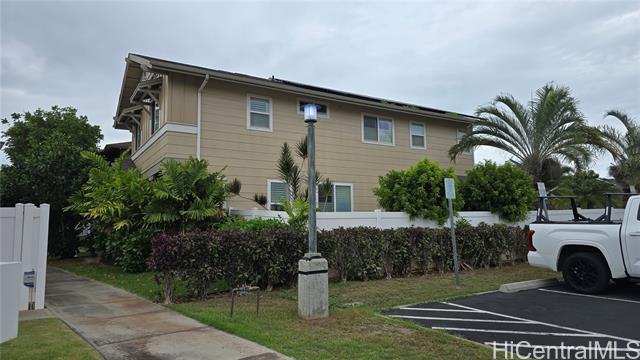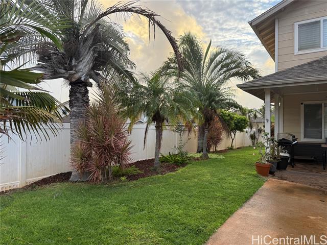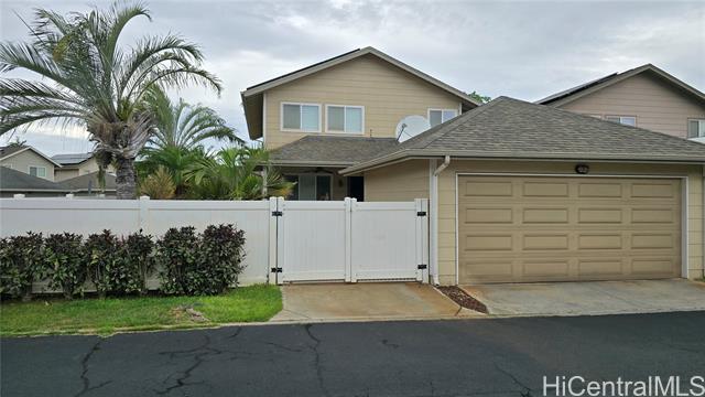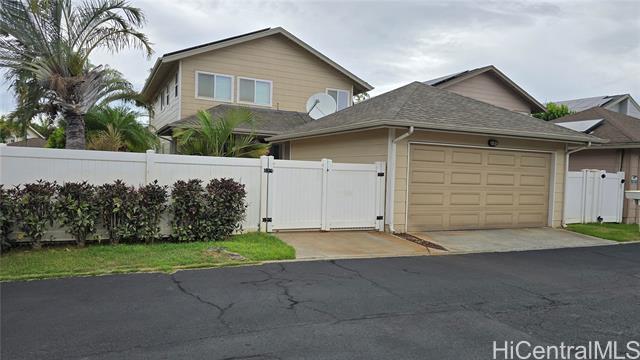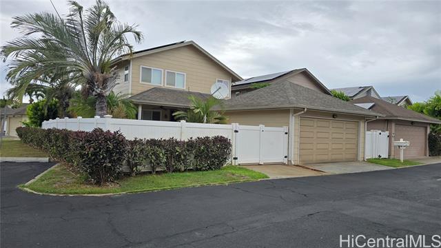 Beautiful and well-maintained 4-bedroom, 2.5 bath single-family home in Ocean Pointe and awaits its new owner. Upgraded luxury vinyl plank floors, granite countertops and plantation shutters and much more. This home also has a 26 panel Leased (fully paid) photovoltaic that expires in 2033, so no additional monthly payment. Huge landscaped yard and large covered lanai to hang out and entertain friends and family. Detached two-car garage with the third parking stall and home adjacent to guest parking. Minutes to Wai Kai, Laulani Shopping Center, restaurants.