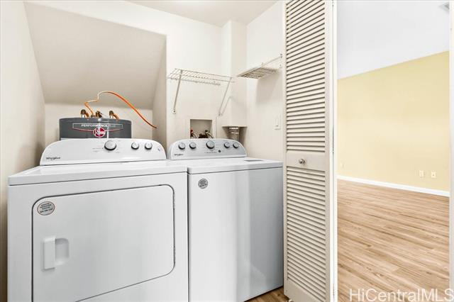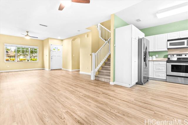 Welcome to this 3-bedroom, 2.5-bath home offering comfort and functionality across 1,196 sq. ft. of living space. Enjoy a bright, open layout with central air conditioning for year-round comfort. The kitchen comes complete with stainless steel appliances, washer, and dryer, while the in-unit laundry adds everyday convenience. The primary suite features a spacious walk-in closet, and two additional bedrooms provide flexibility for family, guests, or a home office. A 2-car garage offers plenty of parking and storage as well as ample guest parking. Move-in ready and located in a desirable Ke Noho Kai Townhomes, this home is waiting for its next owner!