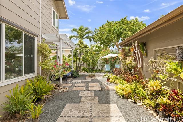SELLER OFFERING $35K CREDIT AT CLOSING. Situated on a prime corner lot in the desirable neighborhood of Ocean Pointe, this home exudes pride of ownership and is in exceptional, like-new condition. Step inside to find plantation shutters, upgraded flooring, and a modern kitchen featuring upgraded cabinetry—perfect for both everyday living and entertaining. The convenient layout includes a bedroom and full bathroom on the first floor, ideal for guests or multi-generational living. Enjoy the comfort of central air conditioning (new system in 2022) and the ease of a detached 2-car garage, offering ample space and storage. The large loft upstairs offers a separate living area and could easily be converted to a 5th bedroom. Step out back to your garden oasis with custom stonework, water fountain and an array of flowering foliage, even a mango tree! There is plenty of room to add more parking if desired. All furnishings negotiable, making this a perfect turnkey home! With its beautiful upgrades and unbeatable location, this home offers the perfect blend of style, comfort, and functionality. Close to beaches, schools, golf courses, shopping, restaurants and Wai Kai Lagoon!