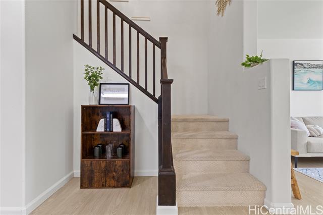 VA ASSUMABLE LOAN – 3.25% – $3580.49 PITI – ~$50K GAP : Welcome to 91-2016 Kaioli St #1902, a beautifully upgraded townhome in the highly desirable Ocean Pointe community. Perfectly situated right across from the pool with ample guest parking, this home offers everything you could ever want. Featuring a spacious open layout with central A/C, this home boasts new stainless steel appliances, brand-new cabinets, quartz countertops, luxury vinyl flooring, and stylish new fixtures. Enjoy a private gated yard, covered lanai with tropical garden views, and a conveniently attached 2-car enclosed garage. Experience the feel of single-family living without the hassle of exterior maintenance. Community amenities include a pool, jacuzzi, BBQ area, and scenic walking paths. This is a must-see!