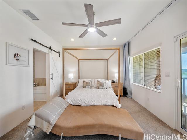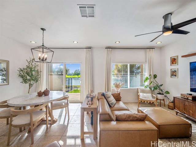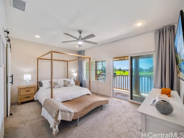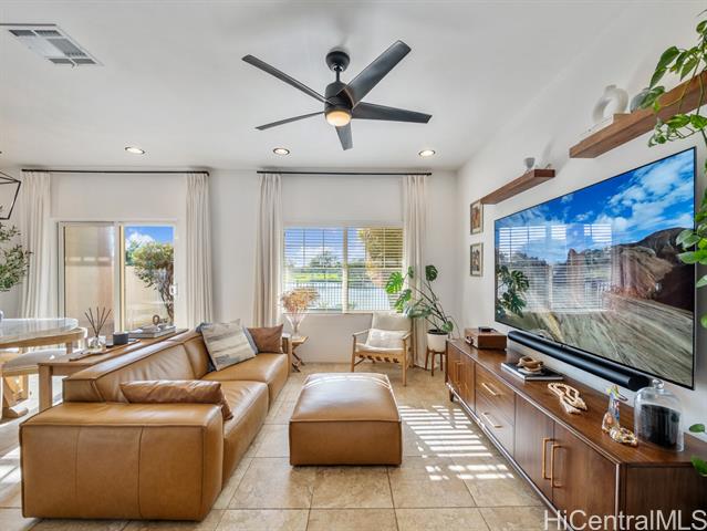 Luxury living, golf course frontage, and sunset views — all under $1M. Live like a single-family home at the Townhomes at Fairways Edge, offering golf course frontage and sunset views at an exceptional value. This spacious 3-bedroom, 3-bath residence features a full bedroom and bathroom on the main level, perfect for guests or multigenerational living. Enjoy an open-concept kitchen, living, and dining area ideal for entertaining. The primary suite opens to a private balcony overlooking Ernie Els’ favorite hole at the Hoakalei Golf Course, home of the LPGA Lotte Championship. Additional highlights include ensuite bedrooms with custom closets, a dedicated laundry room, fully fenced front and backyard with new turf, and a two-car garage. Community amenities include a pool, hot tub, BBQ areas, guest parking, and beautifully landscaped grounds.